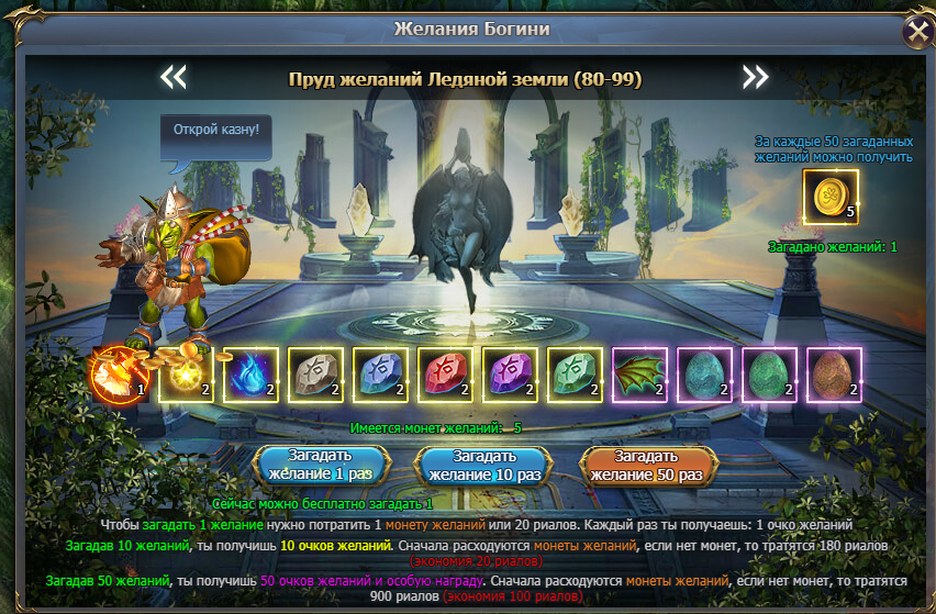 В функционале «Желание богини» появилось новое игровое поле «Пруд желаний Ледяной земли».