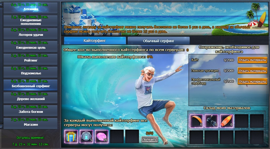 4 сентября начнется событие "Безбашенный серфинг". Волны, пальмы, ветер - удовольствие обеспечено на все 8 дней ивента! Присоединяйтесь к веселью на просторах Dragon Knight 2!
