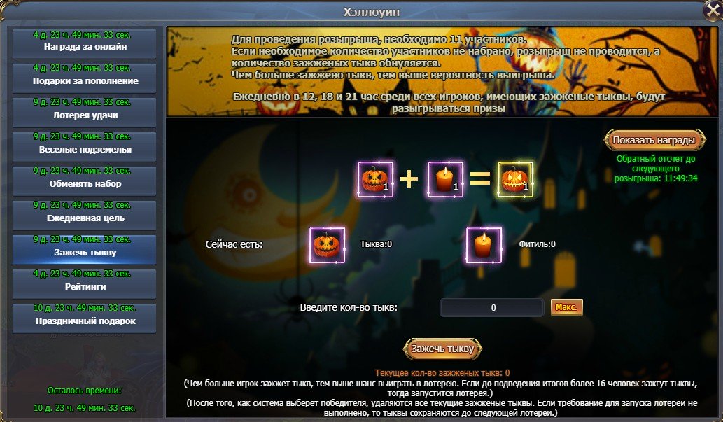 29 октября в игре стартует увлекательное событие "Хэллоуин" длительностью 11 дней. Собирайте подарки, зажигайте свечи в Светильниках Джека - и получайте море удовольствия от этого тематического ивента!