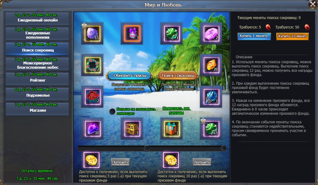 5 марта в игре стартует праздничное событие "Мир и любовь" длительностью 8 дней. Выполняйте задания и забирайте заслуженные награды.