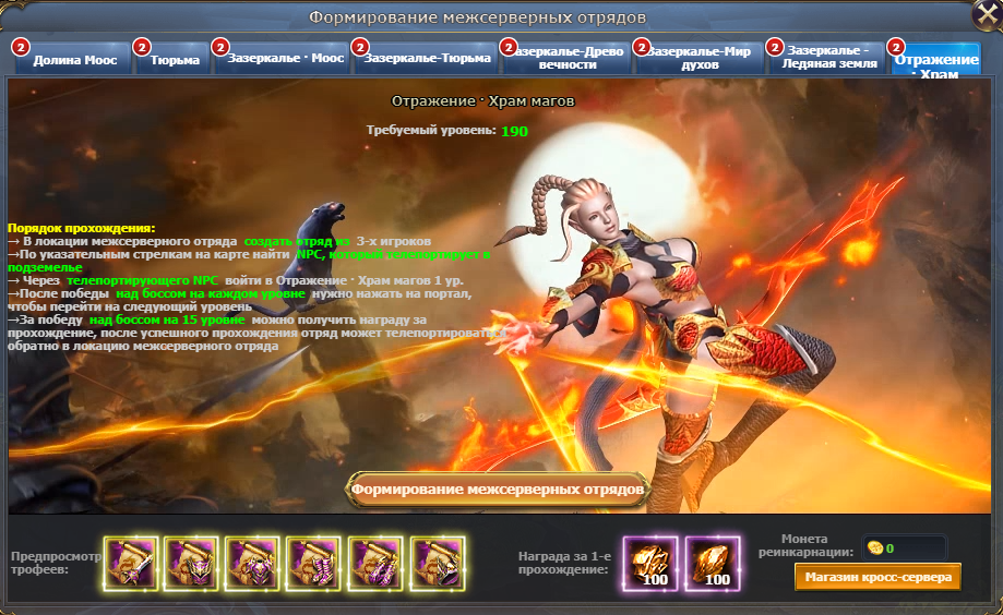 В игре появилась возможность улучшить свое снаряжения до 190 уровня. Необходимые для этого предметы вы найдете в новом межсерверном подземелье - Зазеркалье-Храм.