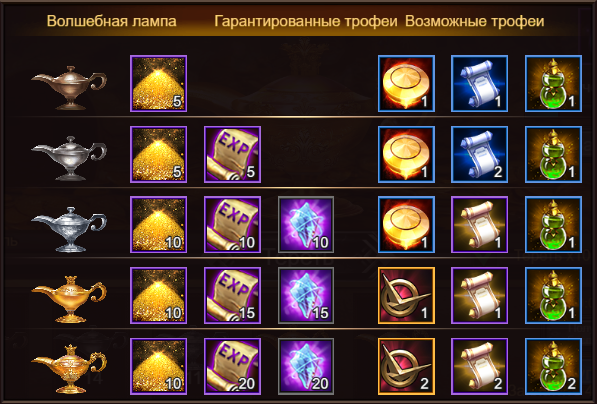 Каждый из видов лампы содержит гарантированную награду для своего обладателя, а также возможные роскошные призы.