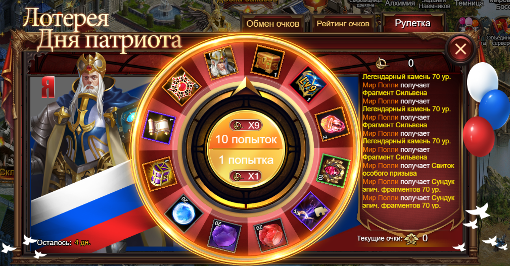 Лотерея Дня патриота -  крутите рулетку и получайте призы! Главное, вы сможете получить ценного соратника Эдмунда.