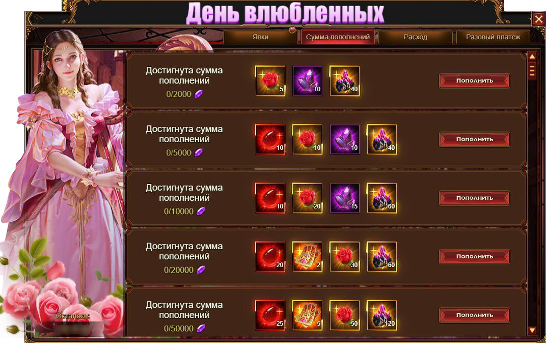 День Влюбленных - Сумма Пополнений