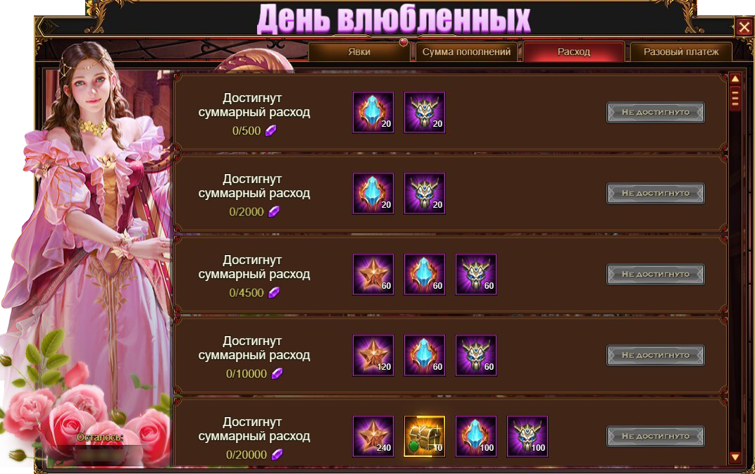 Пополните счет на определенные суммы за пять дней события и получите Алые РозыКамни МудростиОсобые свитки призываЧароитРубеллит и даже маунта Виверна класса SSR!