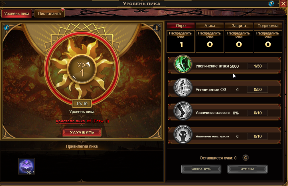 • Уровень Пика максимальный уровень — это только начало! Используйте накопленный опыт, чтобы развить характеристики персонажа!