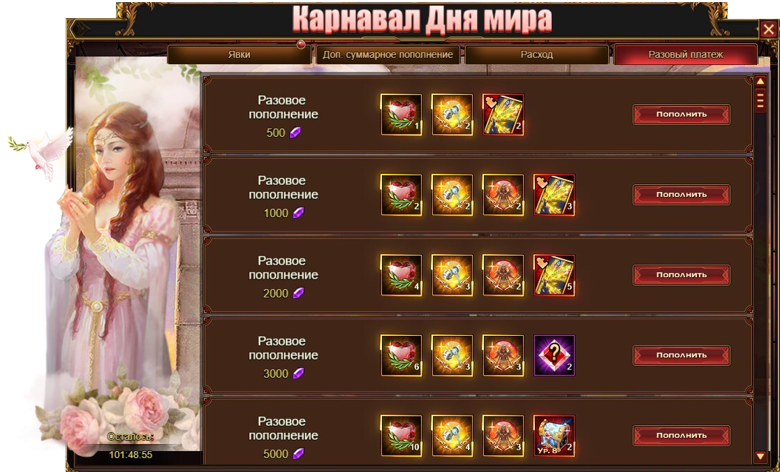 Карнавал Дня Мира - Доп. суммарное пополнение
