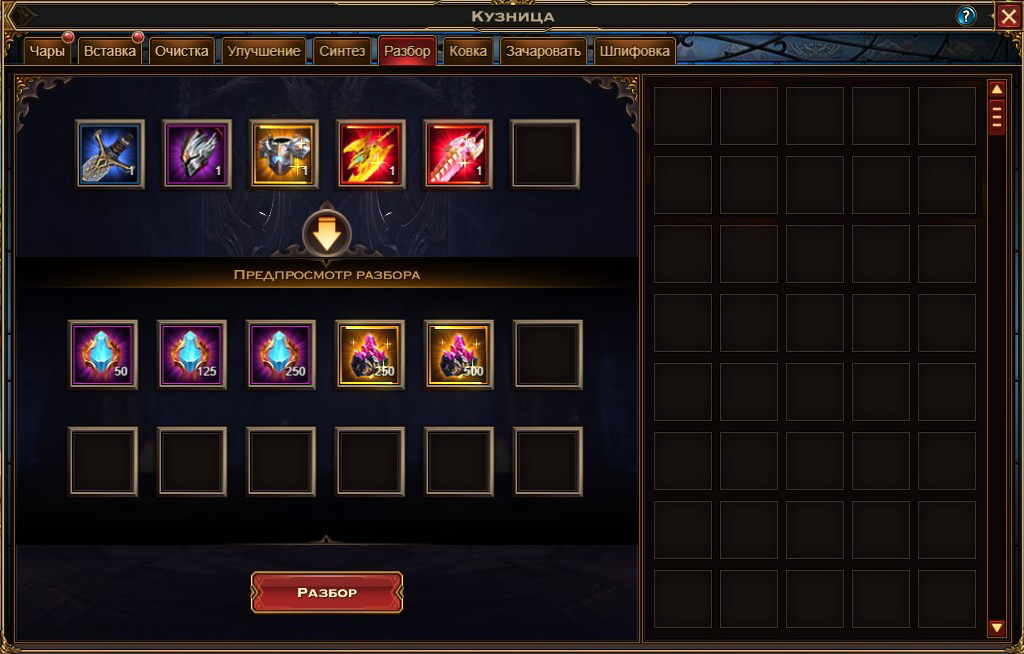 • Разбор нарядов святости — долгожданная функция уже доступна — в Кузне можно разбирать лишние наряды святости!