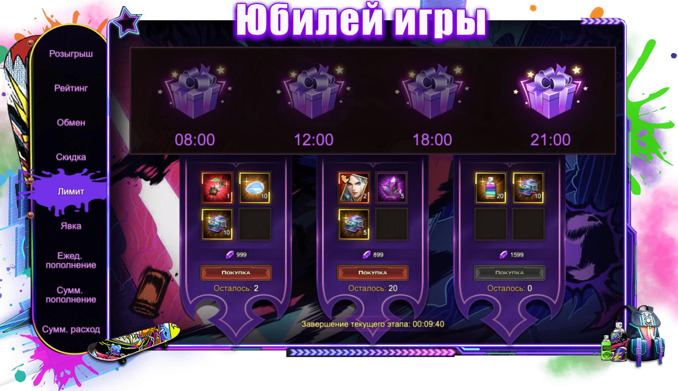 Здесь любопытные искатели приключений могут отыскать временные предложения, доступные в течение ограниченного времени и в ограниченном количестве. Группы товаров доступы с 8:00 до 11:59, с 12:00 до 17:59, с 18:00 до 20:59 и с 21:00 до 7:59. В этот раз вы можете получить в том числе: VR шлем, Баллончики с краской, Плод древа познаний, Чароит, [Фрагмент] Хель.