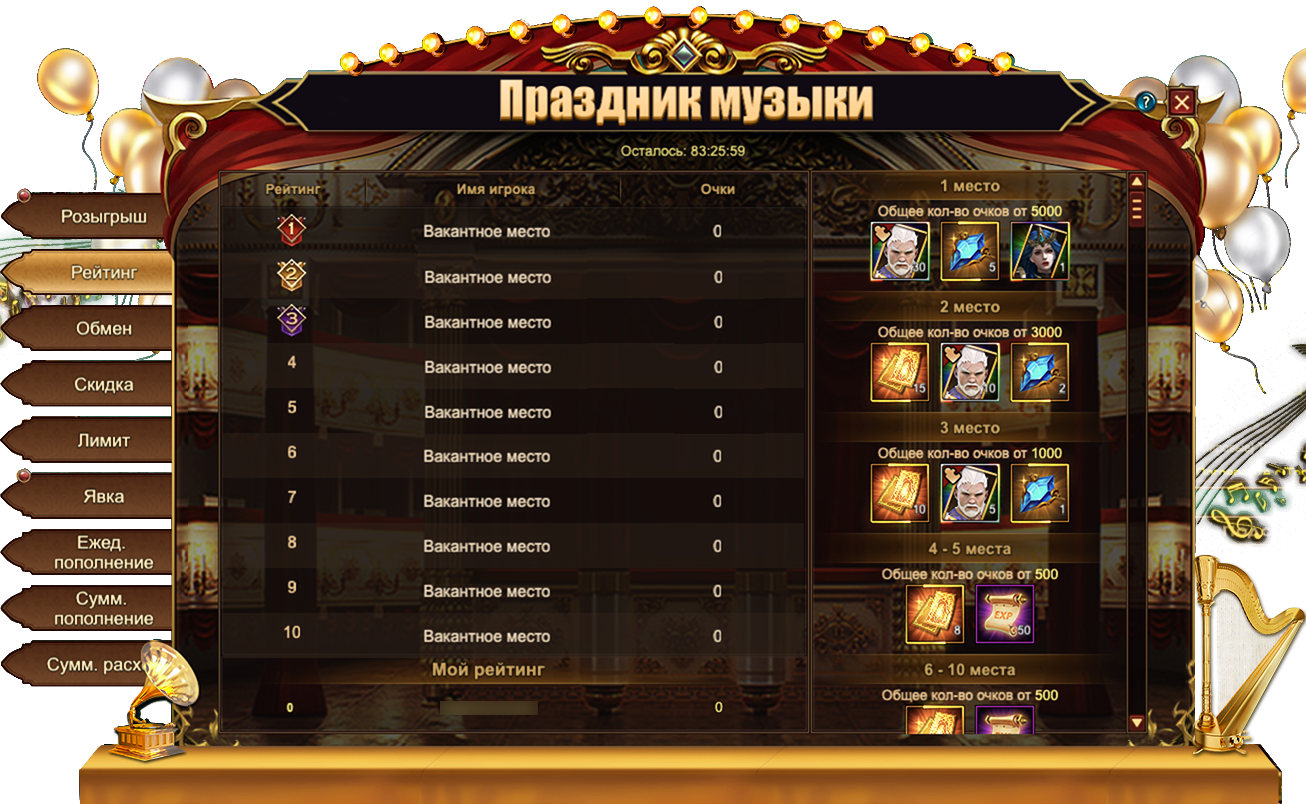 За участие в Розыгрыше вы получаете специальные очки, определяющие ваше положение в Рейтинге фестиваля. В зависимости от положения в рейтинге можно получить: Свитки славыСущность артефакта[Фрагмент карты] ТюрФиолетовые свитки опыта и даже героя класса UR - несравненную Брунгильду