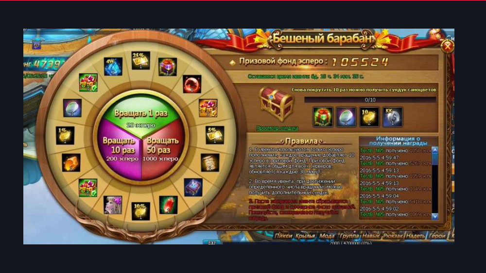 4. 30.11 - 06.12 игрокам будет доступен ивент Бешеный барабан, вращая который можно выиграть ценные призы.
