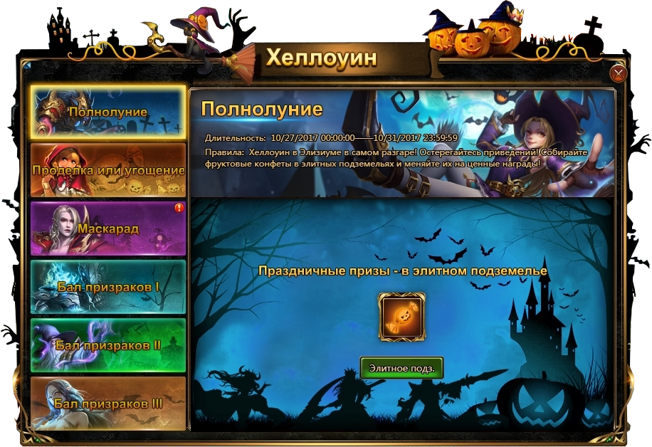 Со всего Элизиума стягиваются люди, ангелы, эльфы и зверолюды, чтобы праздновать Хэллоуин и дать отпор нечисти! Все элитные подземелья теперь заполнены конфетами, но их нужно не есть, а обменивать на маунты, костюмы (принарядитесь к Хэллоуину!) и тонны ресурсов.
