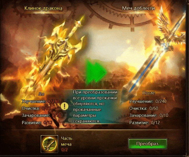 Теперь у каждого героя появилась возможность стать еще мощнее! Новое снаряжение доблести даст существенное увеличение  бонуса характеристик. Чтобы получить это снаряжение, вам необходимо прокачать до максимального уровня артефактный клинок, шлем, доспех и пояс, а затем трансформировать их в сет доблести  с помощью особого материала — частей снаряжение доблести.