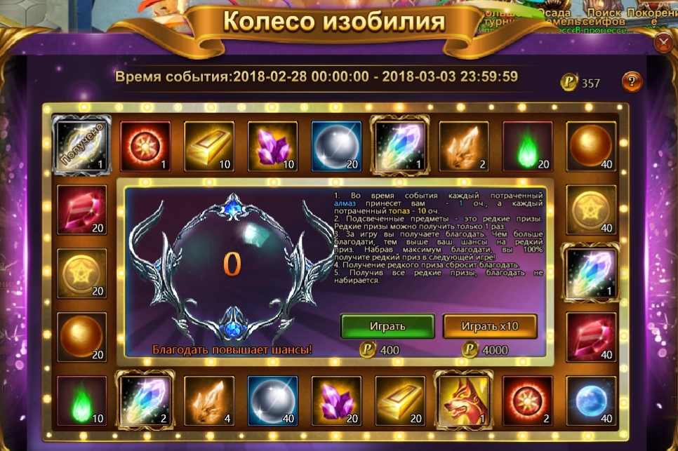 C 28 февраля по 3 марта будет работать событие «Колесо изобилия». У вас есть возможность получить ценные ресурсы, мистические кристаллы и нового маунта Инугами!