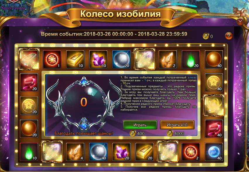 С 26 по 28 марта будет доступно событие «Колесо изобилия»! Крутите волшебное колесо и зарабатывайте очки, чтобы получить крутую награду!