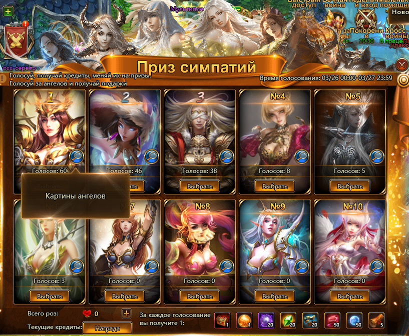26 и 27 марта у вас есть шанс одарить алыми розами любимого ангела в событии «Приз симпатий» и получить приятное поощрение!