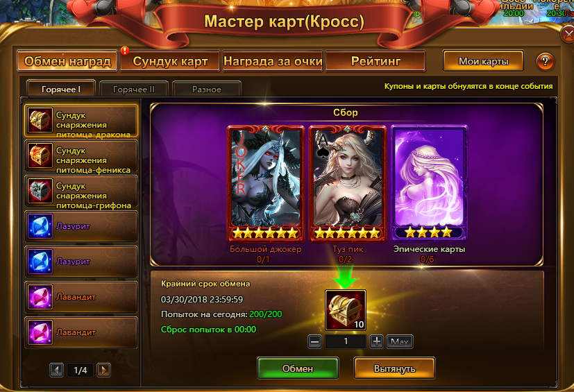 С 27 по 29 марта будет доступно событие «Мастер карт». Открывайте волшебные сундуки, собирайте карточные комбинации и обменивайте их на сундуки снаряжения питомцев и ценные ресурсы!