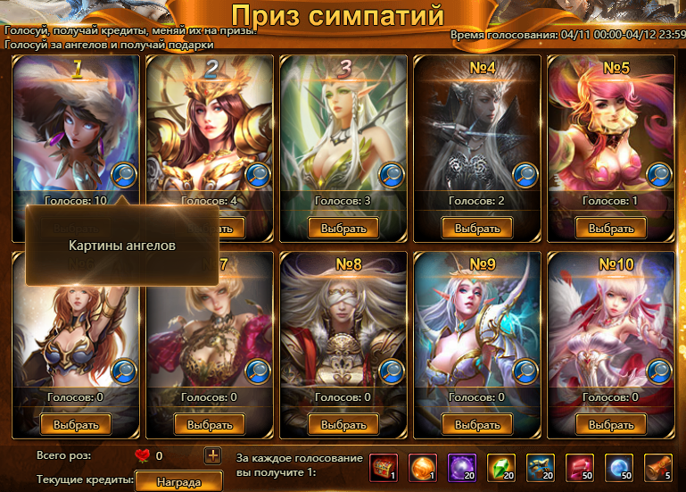 11 и 12 апреля дарите героиням Элизиума розы и получайте за каждый отданный голос приятные награды в событии «Приз симпатий»