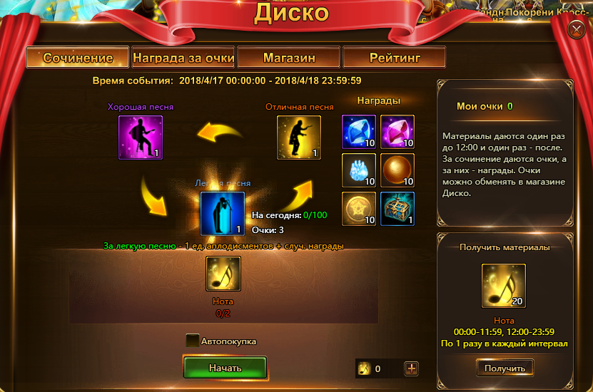А 17 и 18 апреля у вас есть возможность попробовать себя в роли композитора. Создайте ангельскую мелодию в событии «Диско» и соберите куш из оваций и аплодисментов!