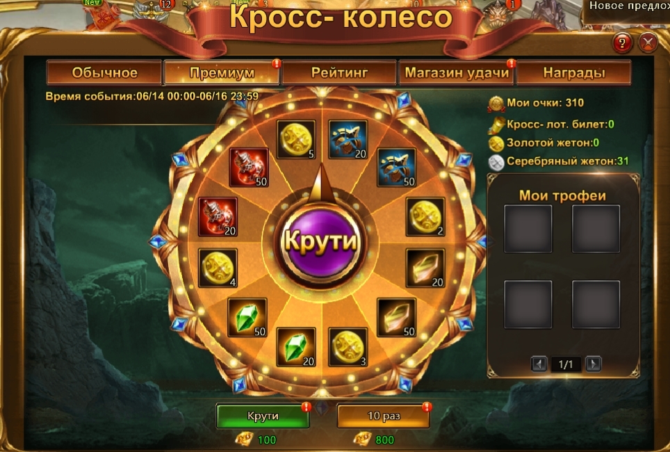 С 14 по 16 июня малыш Ким запустит для вас волшебное «Кросс-колесо». Участвуя в акции, вы будете получать полезные ресурсы, сундуки частей снаряжения, а также золотые и серебряные жетоны, которые можно обменять в магазине ивента на все самое необходимое — первозданные кристаллы, камни мудреца, камни гравировки, камни печати, души дракона, эссенции питомца и многое другое.