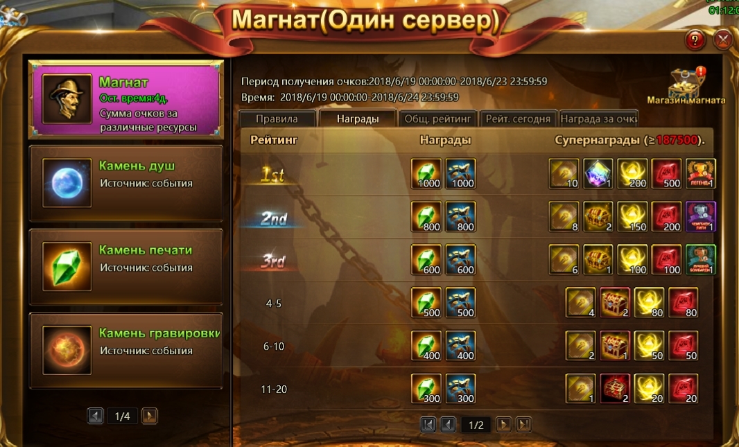 С 19 по 23 июня у вас есть возможность принять участие в односерверном «Магнате». Собирайте ресурсы, получайте за них очки и поднимайтесь в рейтинге события. Победителей ждет достойная награда!