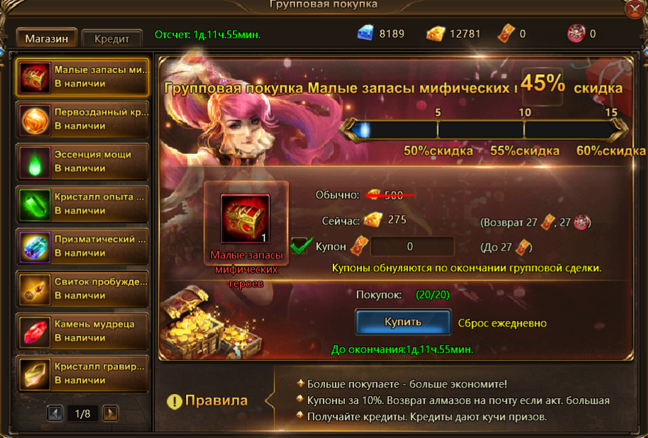 В это же время, 5 и 6 июля, загляните в магазинчик «Групповой покупки»! Таинственная Аиша готова продать вам ресурсы для прокачки тотемов, сундуки частей мифических героев, драконьи души и многое другое.