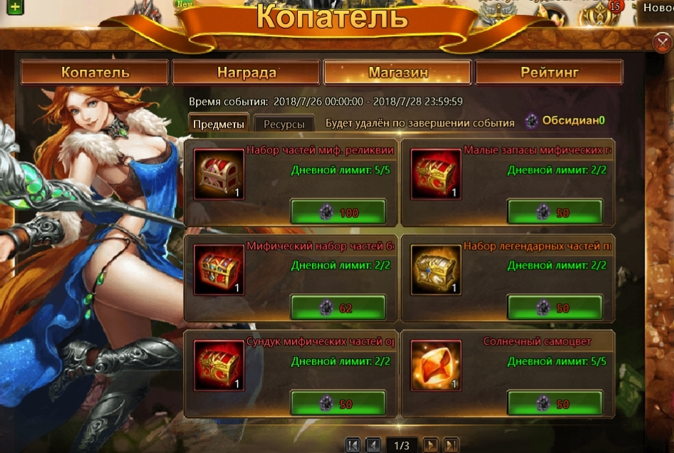 А с 26 по 29 июля прекрасная Афродита будет ждать вас в событии «Сундук первой оплаты». Чтобы открыть сундук, вам необходимы два ключа: серебряный ключ можно получить, совершив накопительное пополнение на 400 топазов в течение первого этапа события (26 и 27 июля). Золотой ключ Афродита вам отдаст, если вы пополните игровой счет суммарно на 1600 топазов в течение первой фазы события или на 2000 топазов — в течение второй фазы (28 и 29 июля). Тот, кто получит оба ключа, заберет трофей из сундука — 50 частей мифического тотема Щита славы.