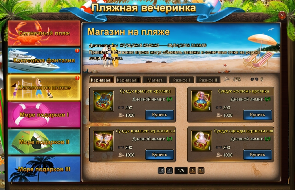 С 30 июля по 3 августа для каждого героя Элизиума открыт летний фестиваль «Пляжная вечеринка». В магазине события у вас есть возможность приобрести самые красивые костюмы и полезные ресурсы!