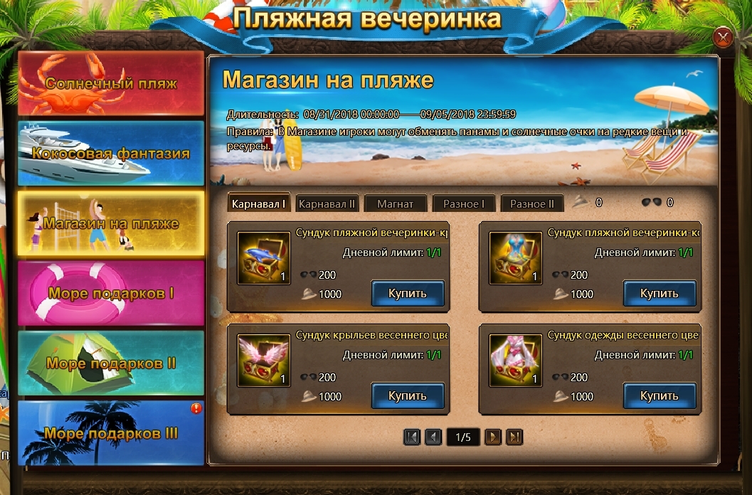 С 31 августа по 4 сентября буде доступно событие «Пляжная вечеринка». Выполняйте задания, получайте особые предметы — кокосы, панамы и очки — и тратьте их в магазине на самые крутые ангельские костюмы!