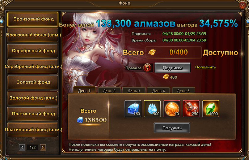 28 и 29 апреля у вас есть возможность вложить определенное количество топазов и активировать нужный вам фонд в событии «Фонд ангела».