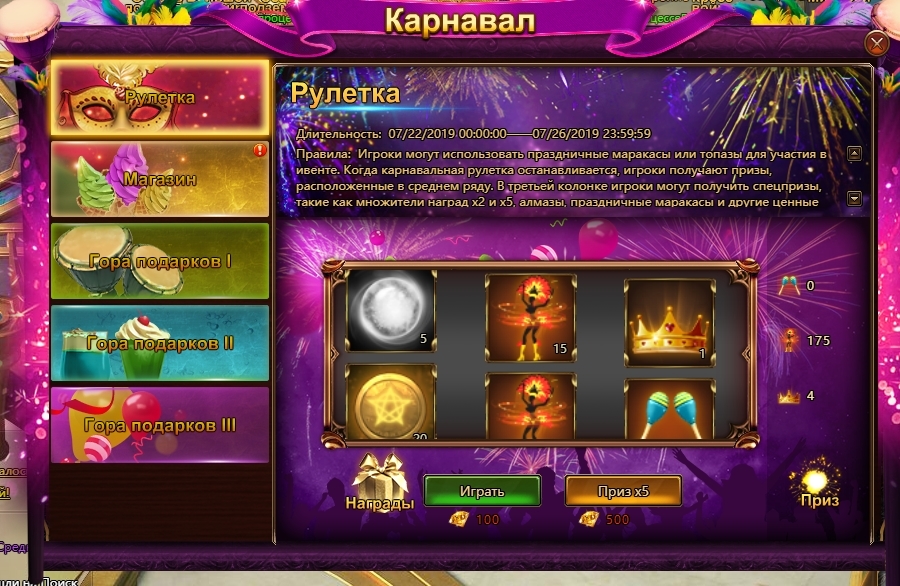 Герои, не упустите возможность попасть на ангельский карнавал с 22 по 26 июля! Крутите праздничную рулетку, вкладывайте топазы и получайте множество ценных подарков.