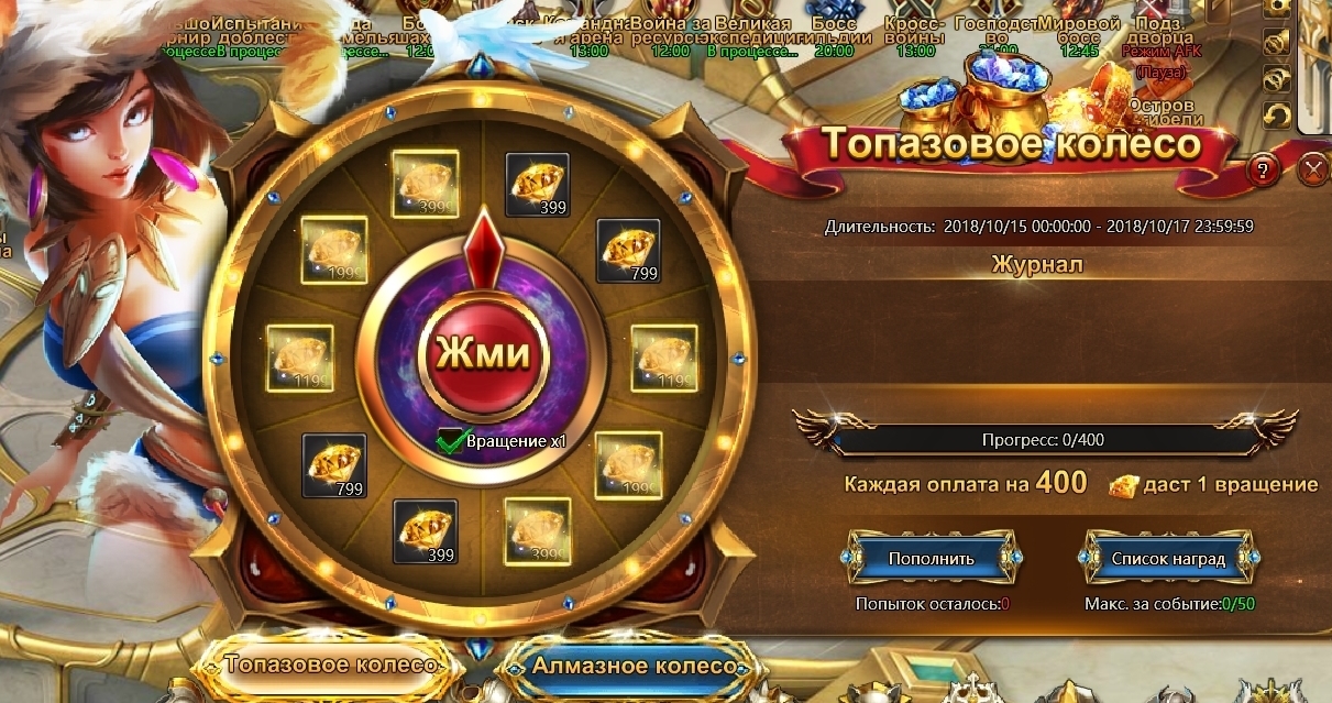 Не забудьте приумножить свои алмазы и топазы в колесе Эльдорадо!