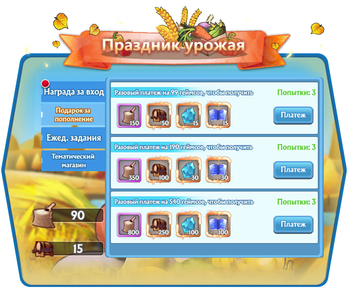 Подарок за пополнение - награды за разовое пополнение игрового баланса.