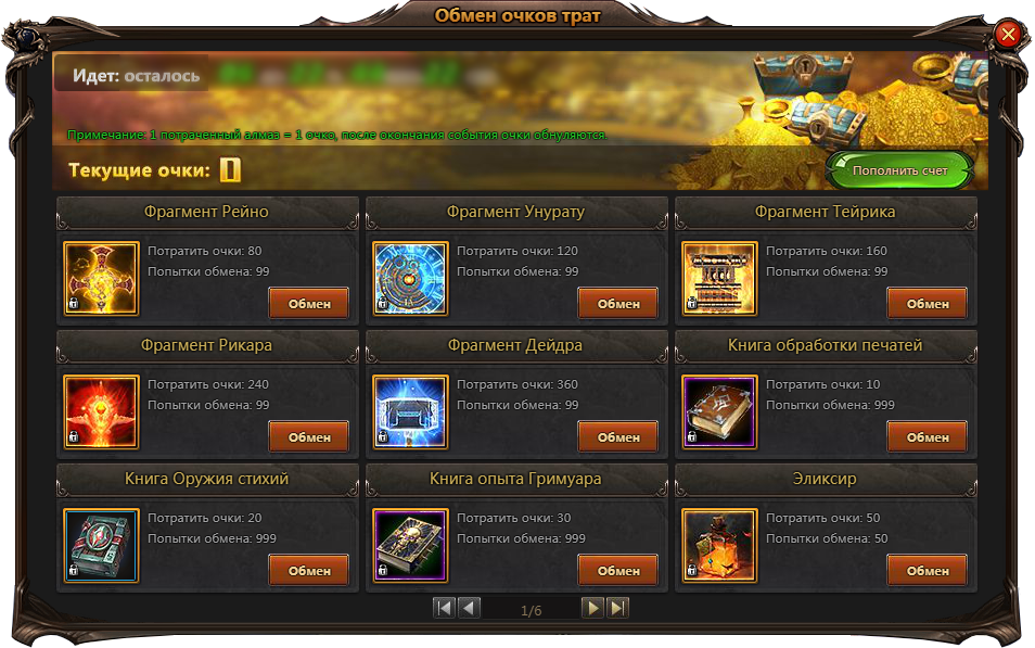 Алмазы, расходуемые в период действия событий выходного дня, принесут вам дополнительную выгоду в акции «Обмен очков трат», где 1 потраченный алмаз равен 1-му очку трат. Копите очки и приобретайте желанные трофеи в обменнике события. Обратите внимание — по завершении акции очки трат обнуляются.