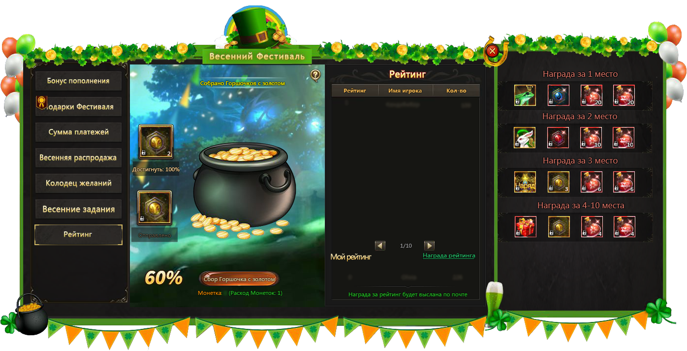 Герои! В этом событии вам предстоит наполнять Горшочки. Объединитесь вместе с другими бойцами своего сервера и используйте добытые золотые Монетки. Наполнив Горшочек наполовину или полностью, игроки всего сервера получат призы на внутриигровую почту.