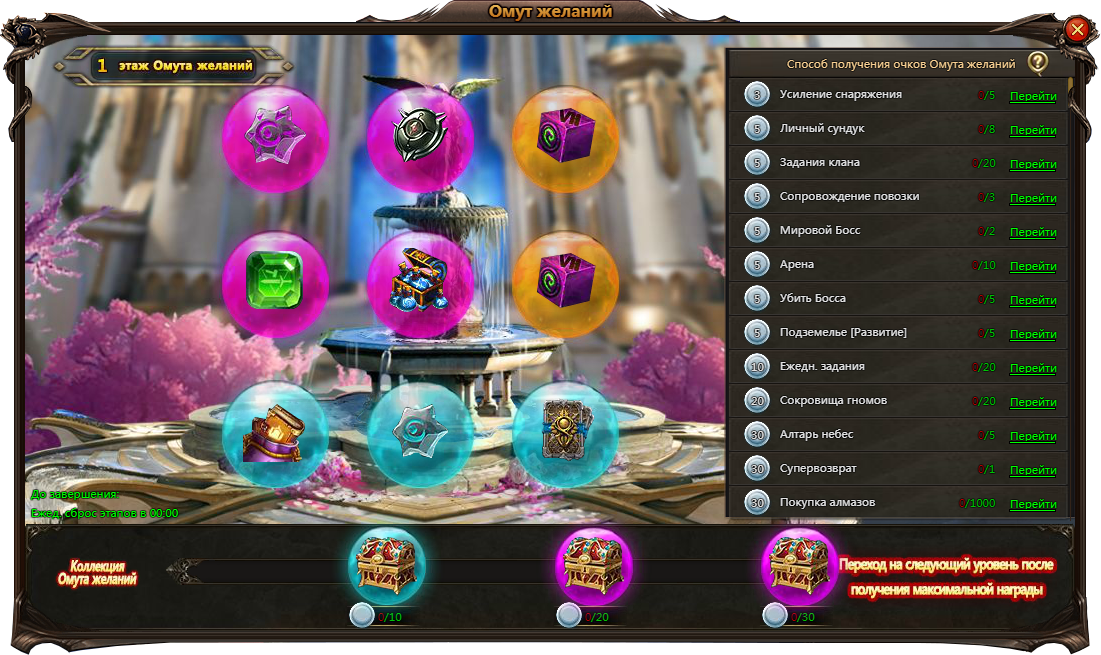 На пути героя поджидает множество битв и испытаний, которые могут принести воину великую славу и боевые трофеи. Отправляйтесь навстречу приключениям, получайте очки за выполнение заданий «Омута желаний» и используйте их для обмена на награды.