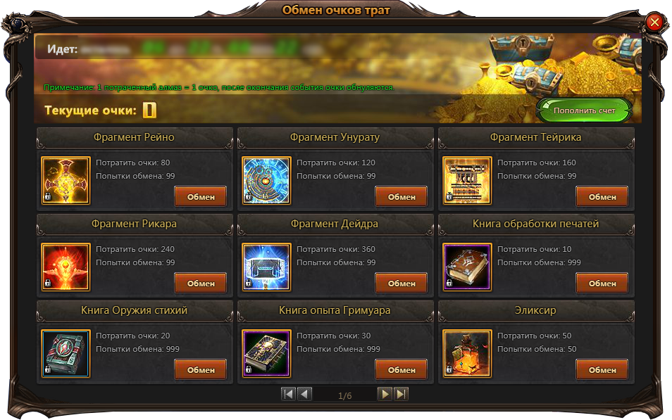 Расходуемые алмазы принесут вам дополнительную выгоду в акции «Обмен очков трат», где 1 потраченный алмаз равен 1-му очку трат. Накопив достаточное количество очков, вы можете порадовать себя желанными приобретениями в обменнике события. Будьте внимательны — с завершением ивента очки трат обнуляются.