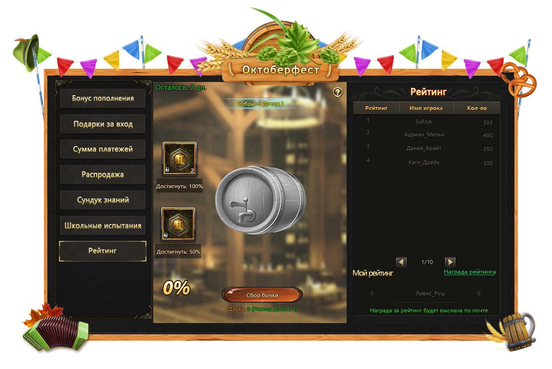 Октоберфест. Анонс игровых событий 25 сентября - 2 октября