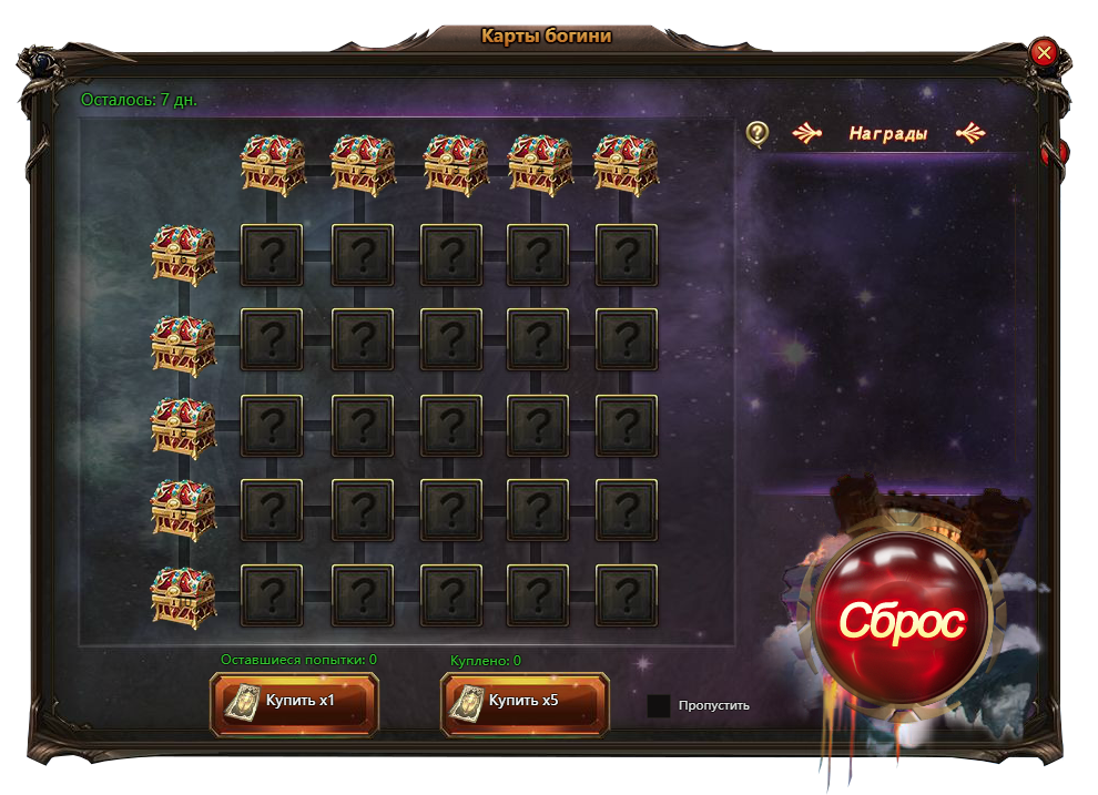 Открывайте загадочные карты в ивенте «Карты богини» и прокладывайте путь к сундукам с сокровищами.