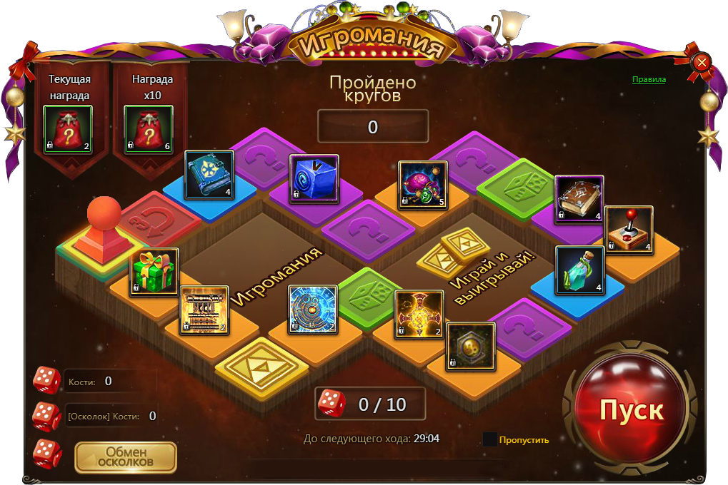 Ивент «Игромания» вновь доступен отважным искателям сокровищ! Бросайте кости, перемещайтесь по игральной доске и выигрывайте призы.