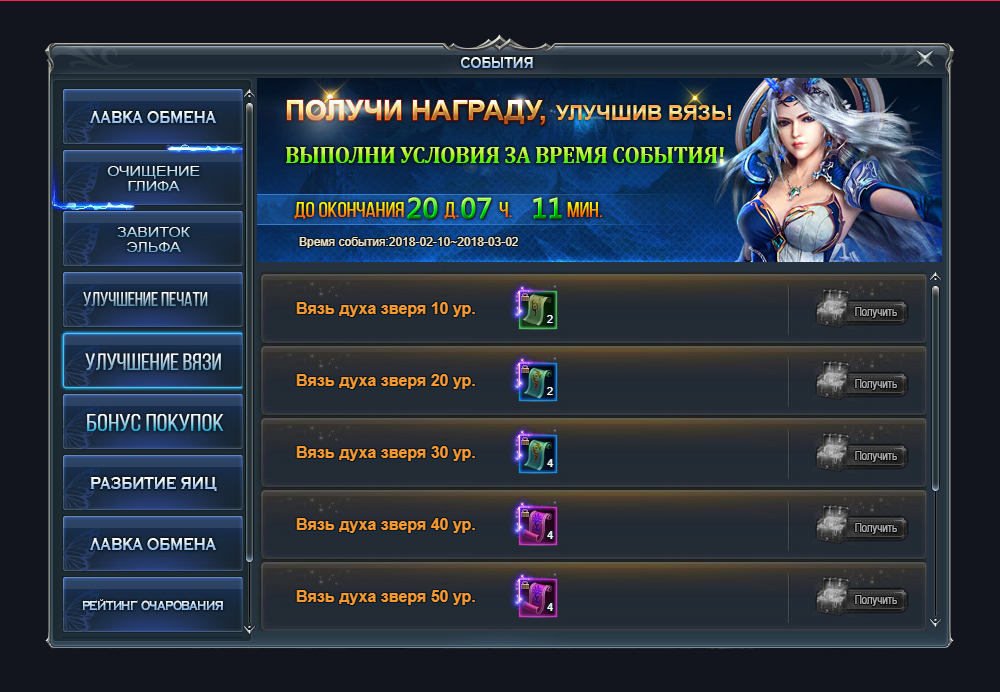 5. С 10 февраля до 2 марта - ивент «Улучшение вязи» - улучшайте вязь духа зверя в период проведения события и получайте награды!