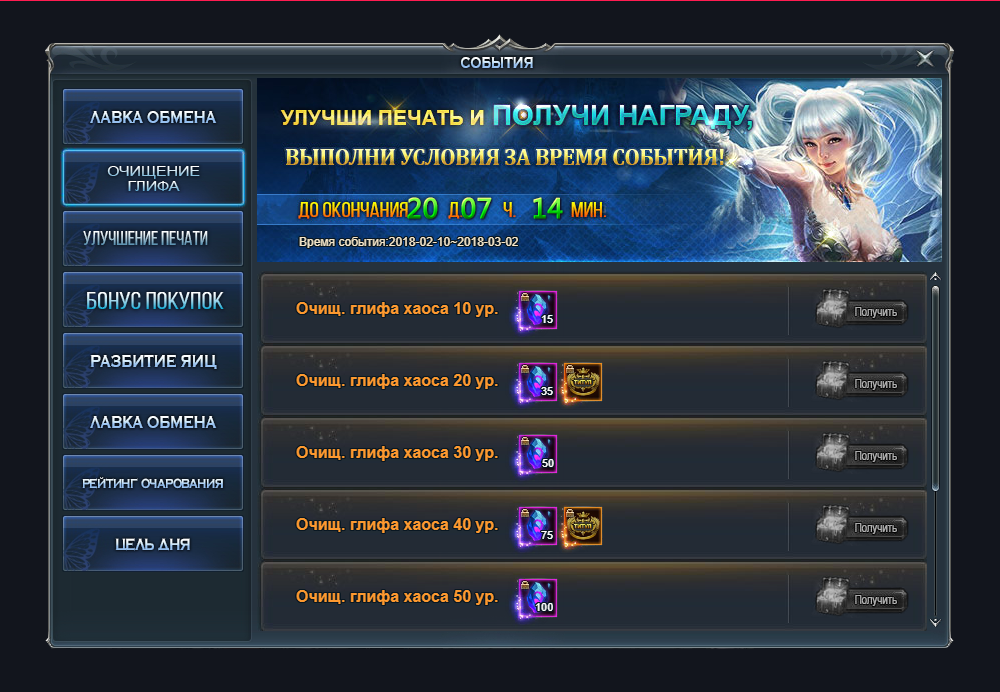 2. С 10 февраля до 2 марта принимайте участие в событии «Очищение глифа» - очищайте глиф хаоса, получайте дополнительные награды для последующей прокачки и особые титулы!