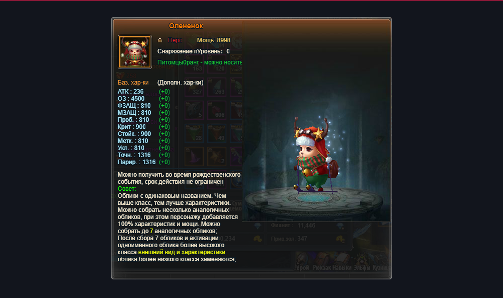 • Облачение питомца Олененок