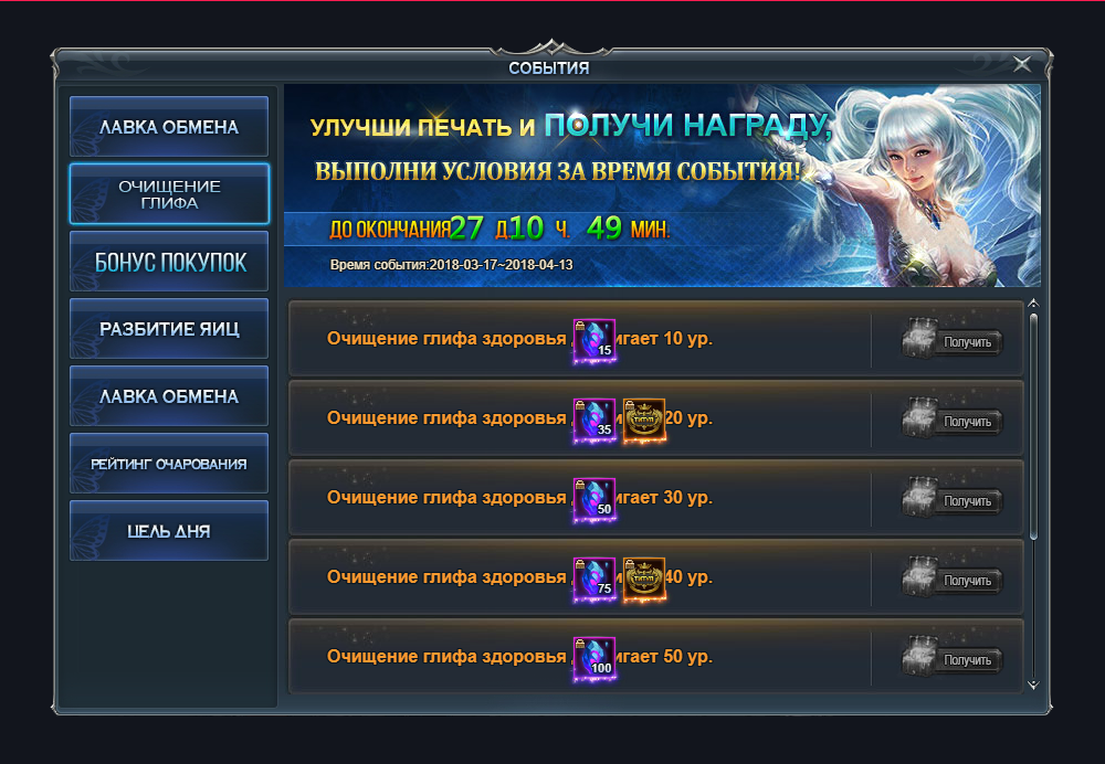 2. С 17 марта до 13 апреля принимайте участие в событии «Очищение глифа» - очищайте глиф здоровья, получайте дополнительные награды для последующей прокачки и особые титулы!