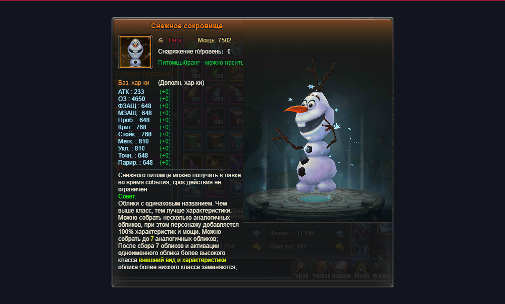 • Облачение питомца Снежное сокровище