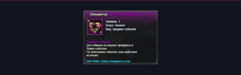 • событие «Поиск Сокровищ» - добывайте лопаты и принимайте участие в ивенте. У вас есть отличный шанс выиграть множество полезных призов, среди которых вы найдете особенный предмет - Венок прихода весны. Собирайте их и копите, чтобы затем применить в Лавке Обмена и приобрести желанные трофеи! Обменник доступен до 11 мая.