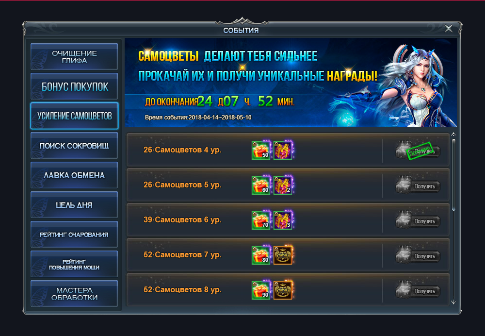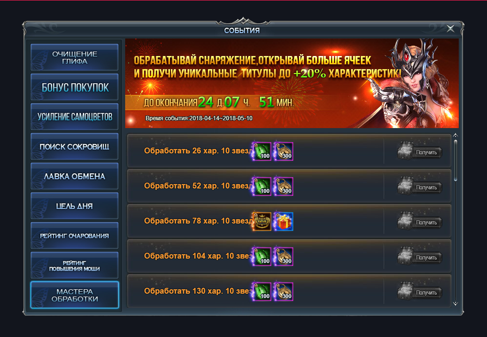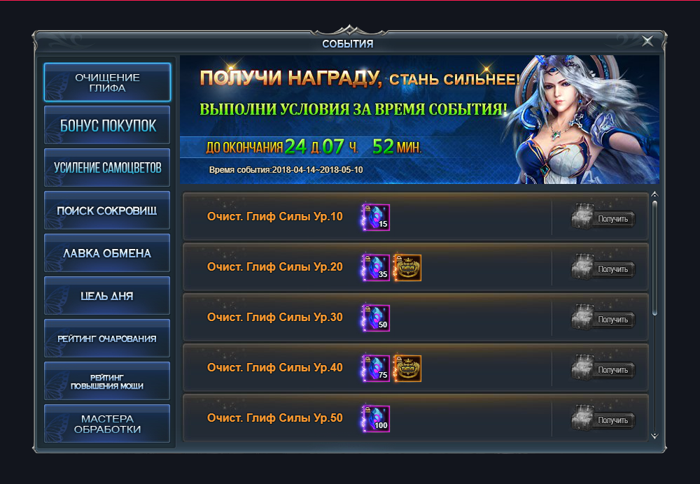 С 14 до 16 апреля - ивенты «Рейтинг Очарования» и «Рост БМ». Покоряйте их вершины и получайте множество ценных наград. До завершения событий осталось совсем немного, но у вас еще есть шанс стать обладателями отличных призов!